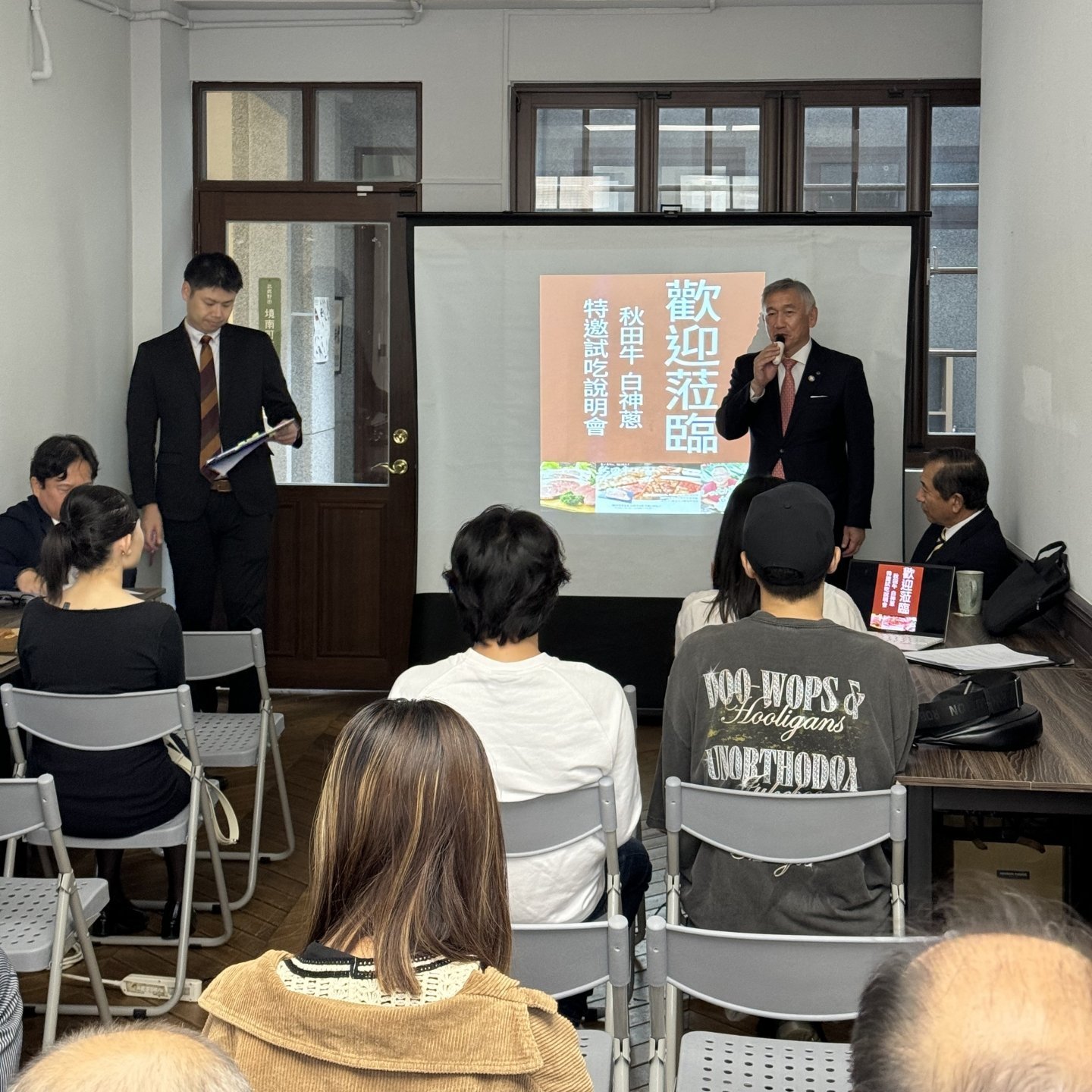 邀請台灣餐廳業者和主廚參加秋田牛・白神蔥試食說明會。